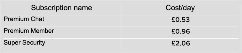The perks of each subscription on offer differ wildly from the others so you really need to decide what is important to you. It is also not clear how long the subscriptions last nor what each feature entailed as they are only listed (with no additional information).